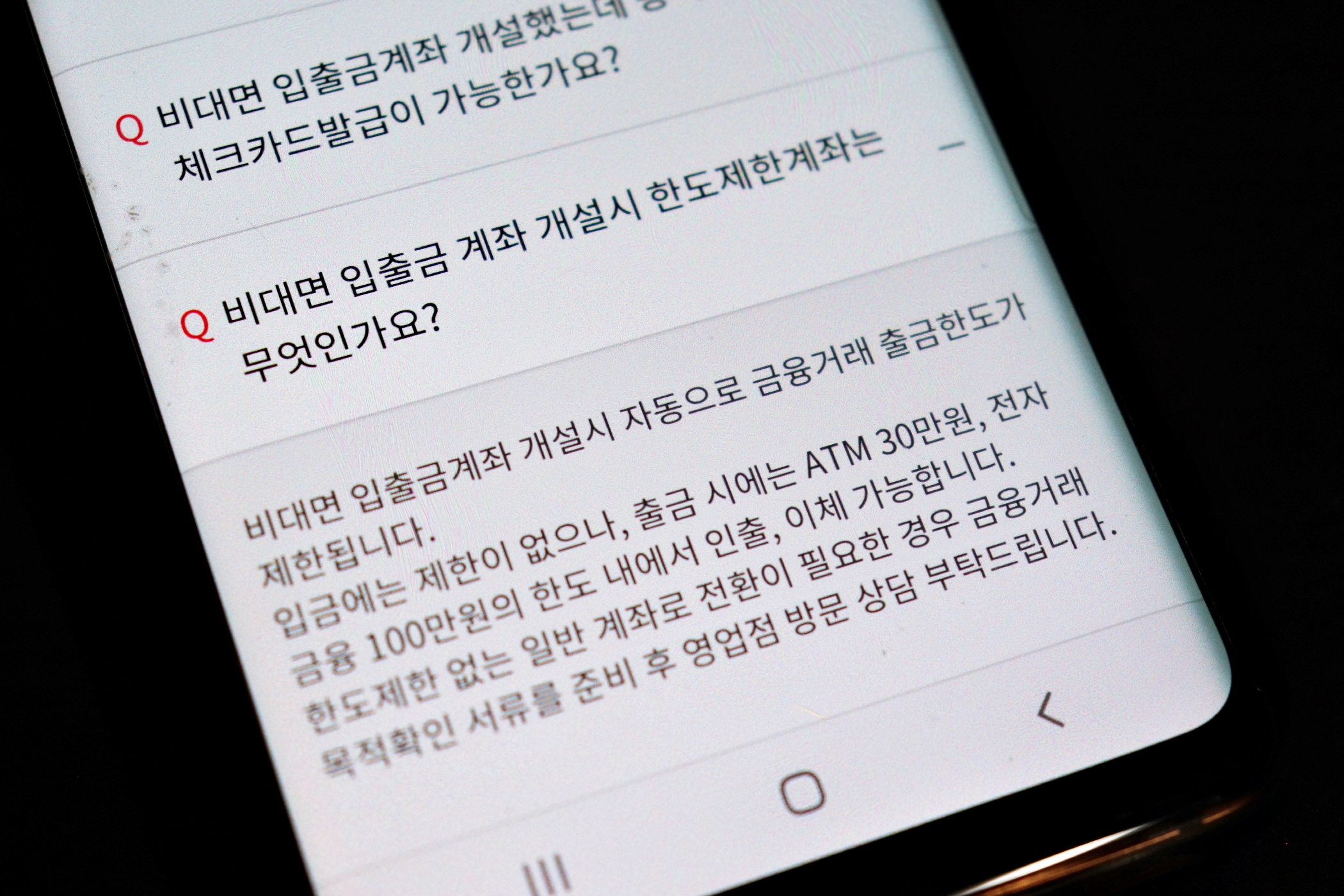 비대면 입출금 계좌 개설 시 자동으로 출금한도가 제한되며,