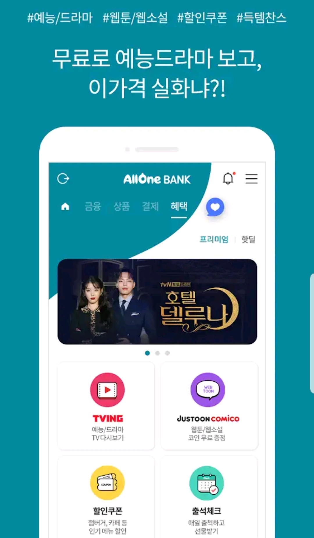 올원뱅크 어플안에서 예능드라마도 보게 해놨더군요