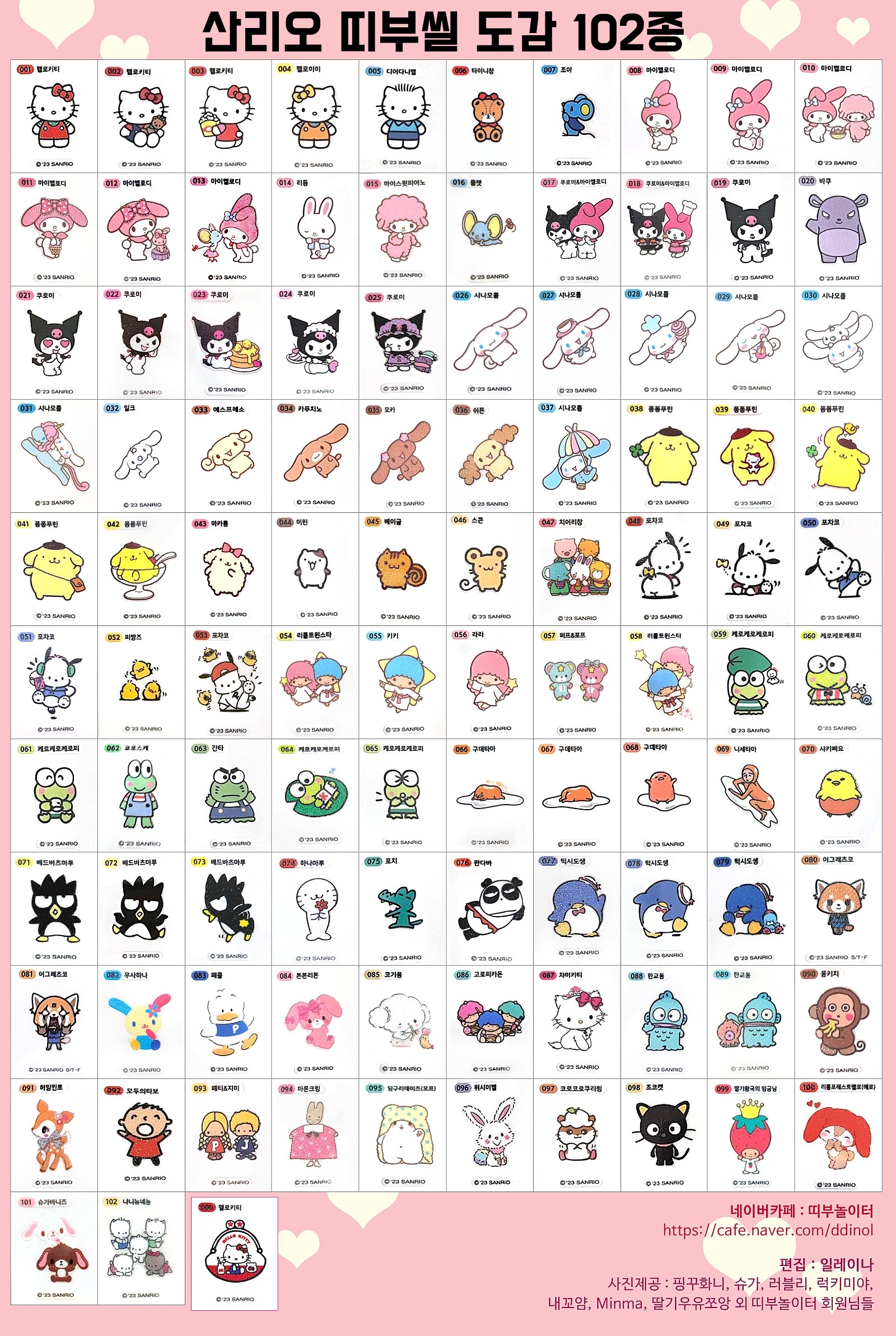 산리오빵 띠부씰 도감 102종이랍니다