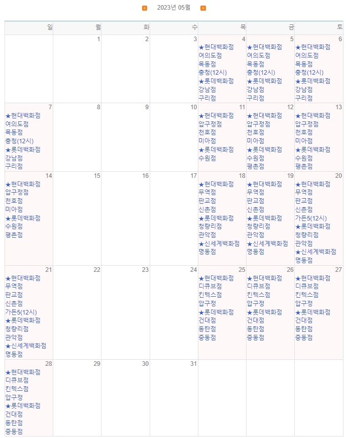 스케쥴은 매월1일에 그달 팝업 일정이 올라오니 아래 사이트에서 확인하시면 되시고요