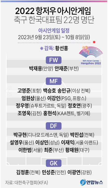 아시안게임 축구 한국대표팀 명단