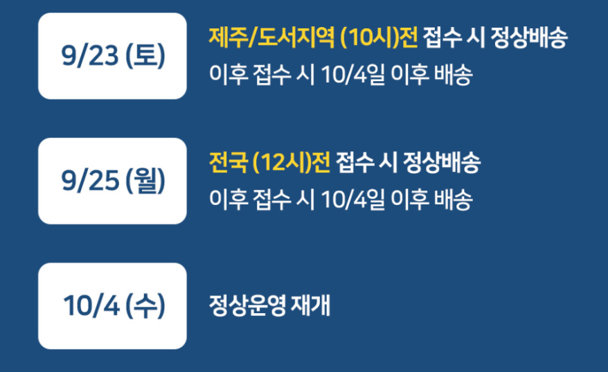 추석전후 택배물량으로 인해서 온라인 택배예약도 추석뒤에 시작을 합니다.