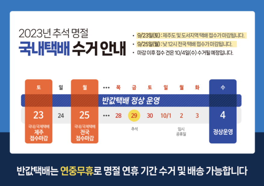 2023 추석 택배마감 및 접수시작일 (CU편의점, GS25, CJ대한통운)