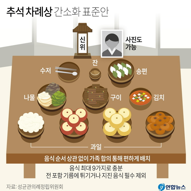 성균관에서는 간소화된 추석 차례상 표준안을 제시했었는데요. 식구들이 모이는 집이면 이정도로 간소화로는 못하실테고