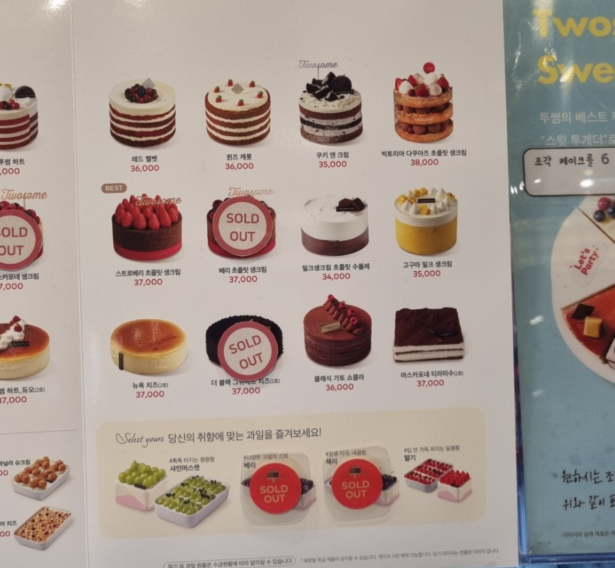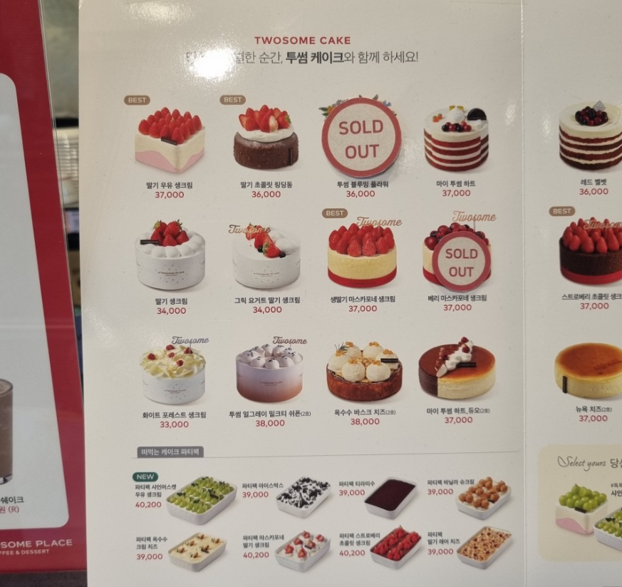 투썸플레이스 케이크 메뉴 가격, 음료 메뉴가격