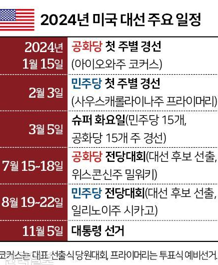 2024년 미국대선은 1월과 2월 공화당과 민주당의 경선으로 시작이 됩니다.