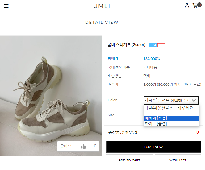 한동훈 신발은 우메이라는 온라인 사이트이고
